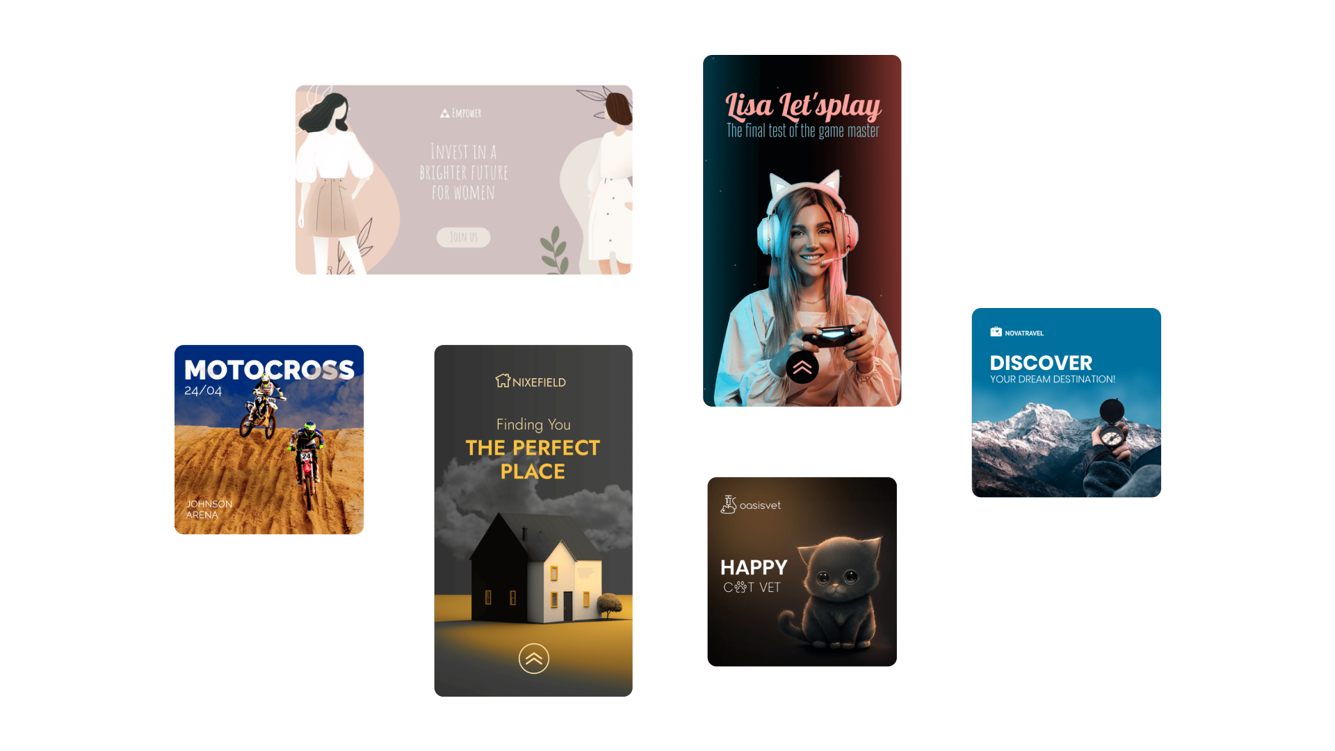 Sie erhalten Zugang zu einer breiten Palette an Tools und Banner-Vorlagen, die Ihnen helfen effektive animierte Werbebanner für Ihre Website, YouTube, Facebook, Instagram, LinkedIn und Social-Media-Plattformen in nur wenigen Minuten zu erstellen.